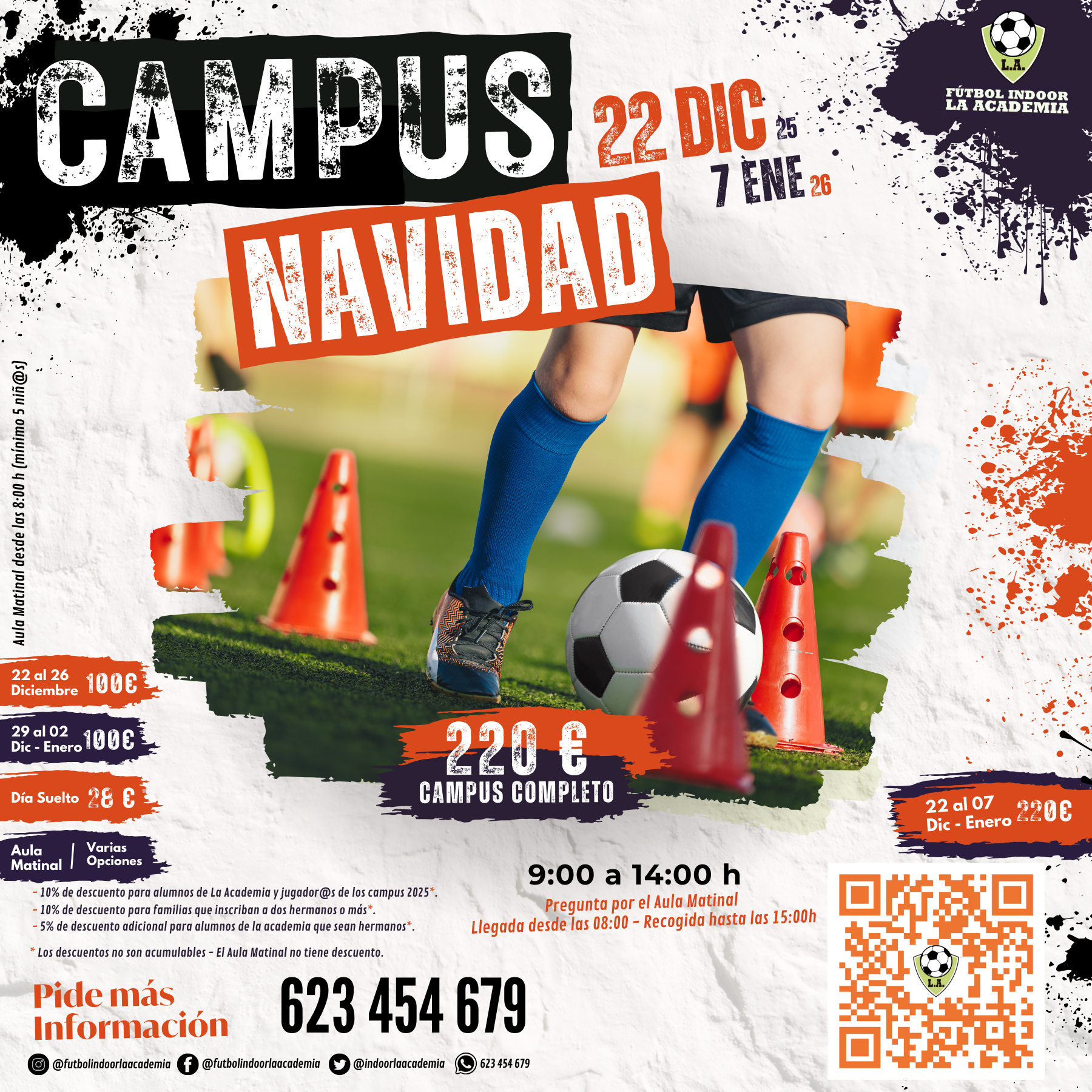 Cómo cada año ven a disfrutar a nuestro campus de Navidad, aprenderás jugando. Nuestro campus de Fútbol, además de entrenamientos técnicos, tiene también su parte lúdica y educativa. Fútbol , juegos, inglés, entrenamiento cognitivo, desayuno saludable, todo esto y más te harán pasar una Navidad inolvidable. Inscríbete ya!!! Plazas limitadas.